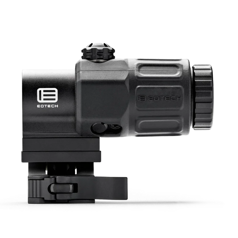 Extend the reach of your EOTECH holographic sight without sacrificing speed. The EOTECH G33 3X magnifier, selected by USSOCOM, adds immediate magnification for positive target identification while keeping your 1x reflex-style handling when you need it. Its Switch-to-Side (STS) mount flips the magnifier out of the sightline in seconds, letting you transition from 3x to true 1x on demand. Tool-free vertical and horizontal adjustments make it easy to align behind any EOTECH HWS model, while the adjustable diopter sharpens the reticle and target image to your eye for faster, more precise focus. With 2.2" eye relief, a 7.3° field of view, and a 7.6 mm exit pupil, the G33 delivers a forgiving sight picture in dynamic shooting positions, all in a compact 4" length and just 10.6 oz with the mount. Run it on a 1" Weaver or MIL-STD-1913 rail for patrol carbines, training rifles, and duty setups where you need close-quarters speed plus mid-range capability. Assembled in the USA, the G33 is fog-resistant, water resistant to 33 ft, and rated from -40°F to 140°F for professional use in harsh environments.